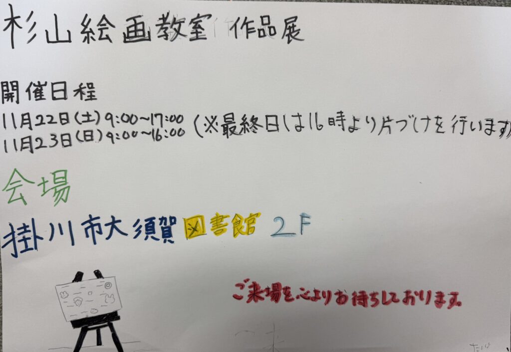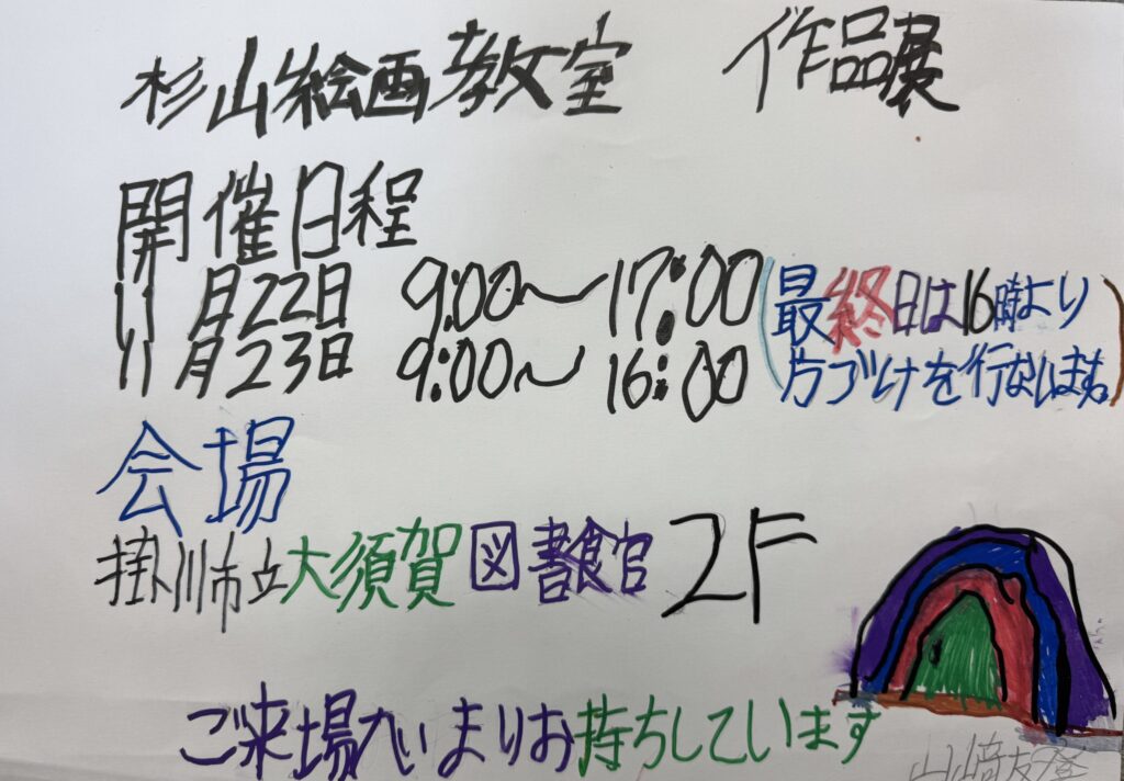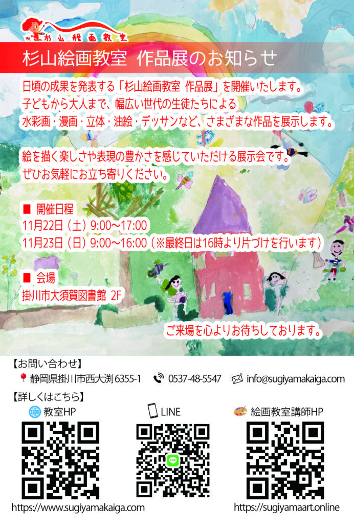 杉山絵画教室では、子どもたちと大人の皆さんによる一年間の制作の成果を展示いたします。
